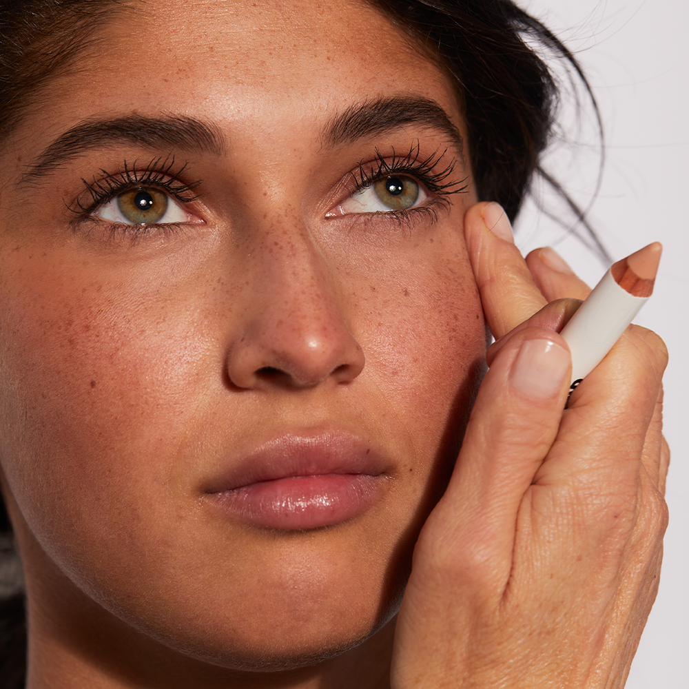 For those with dry skin, start with moisturizer and apply The Face Pencil as needed to even out skin (or blend moisturizer with The Face Pencil on the back of your hand and apply). Those with oily skin can skip directly to The Face Pencil.