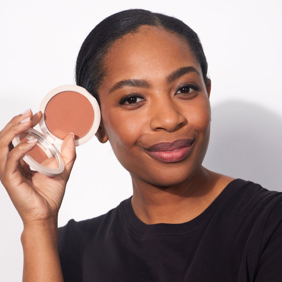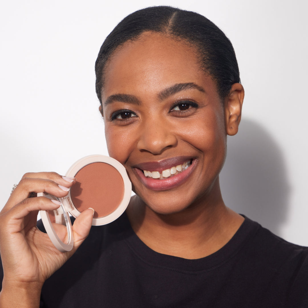 Other bronzers tend to be denser, more orange, and can appear muddy on the skin. Our bronzer is sheer, lightweight, and buildable with little to no shimmer.