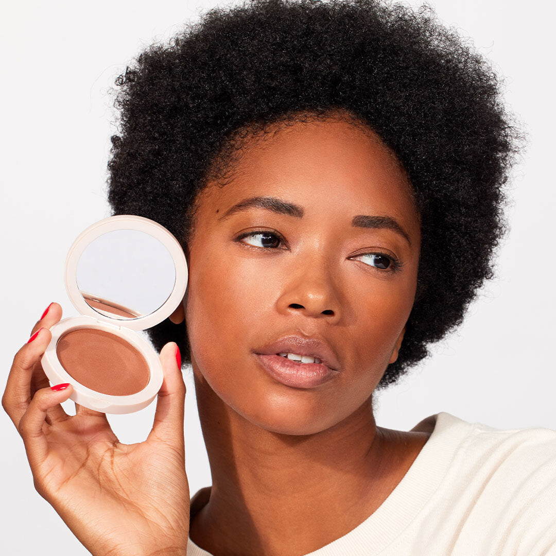 Other bronzers tend to be denser, more orange, and can appear muddy on the skin. Our bronzer is sheer, lightweight, and buildable with little to no shimmer.