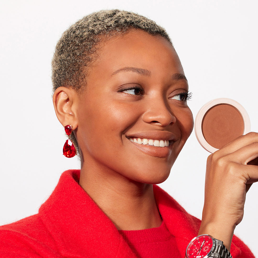 Apply Bronzer to places where the sun naturally touches the face, like the forehead, cheeks, and bridge of the nose‚ using the Bronzer Brush. Also works perfectly on the neck to seamlessly blend the face to the body.