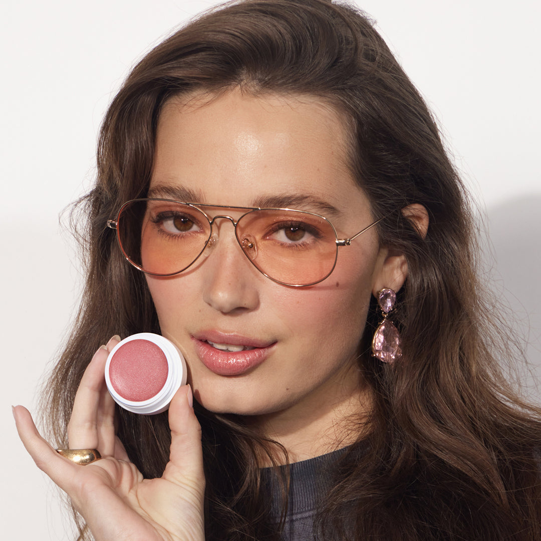 Start by applying Gel Bronzer to the high points of your face where the sun naturally hits. Start on the cheeks, then your forehead, nose, and neck, blending with The Buff Brush. Next, break the seal of the Mini Miracle Balm and lightly dab a pea-sized amount onto your cheeks. Line your eyes with The Best Pencil and swipe Sparkle Wash on your lids for definition and a touch of shimmer. Lastly, swipe on Cool Gloss to complete the look.