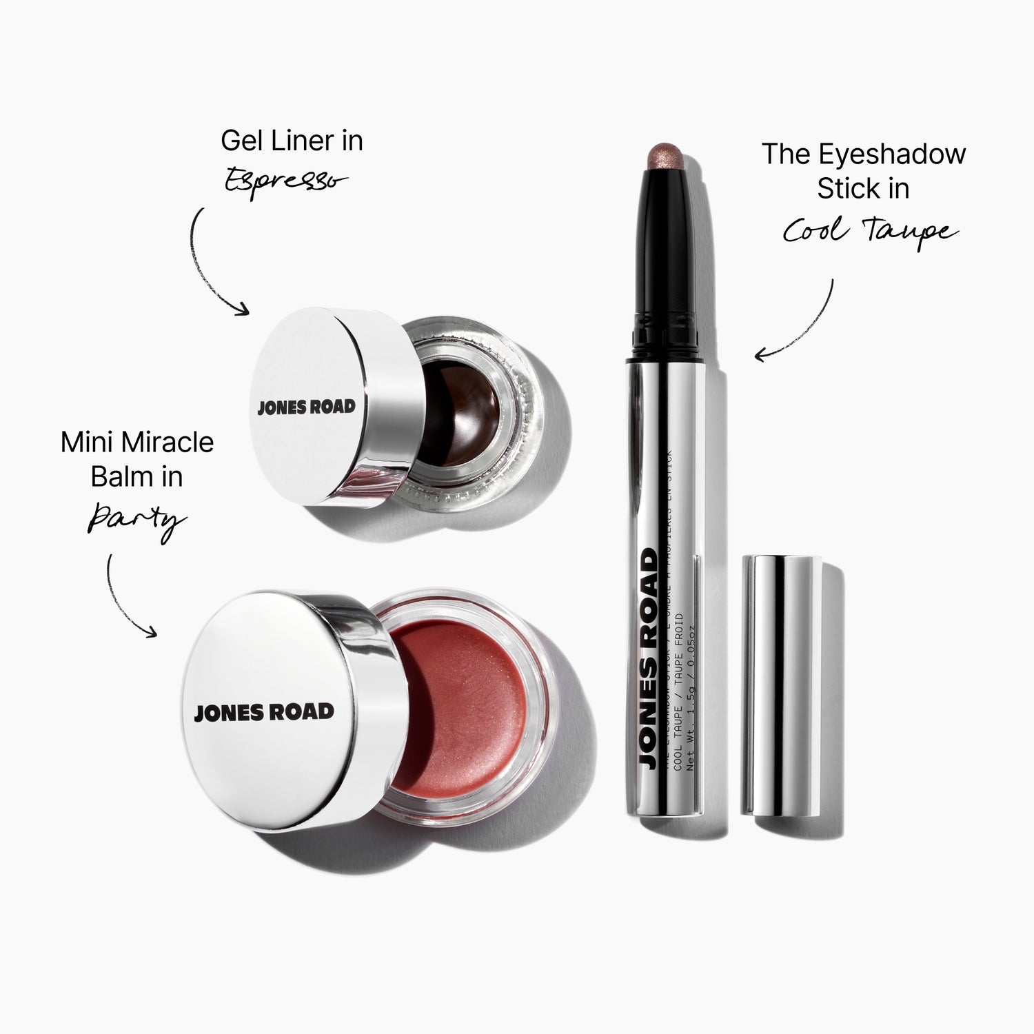 It all comes down to personal shade preference. The Party Kit in Party features The Eyeshadow Stick in Cool Taupe, a taupe shade with multidimensional shimmer, and Mini Miracle Balm in Party, a medium pink with subtle gold shimmer — best for fair to medium skin tones. The Party Kit in Rouge includes The Eyeshadow Stick in Cool Brown, a brown shade with multidimensional shimmer, and Mini Miracle Balm in Rouge, a rosy berry with subtle gold shimmer — great for light to deep skin tones. Both kits also include Gel Liner in Espresso, a deep, rich brown.