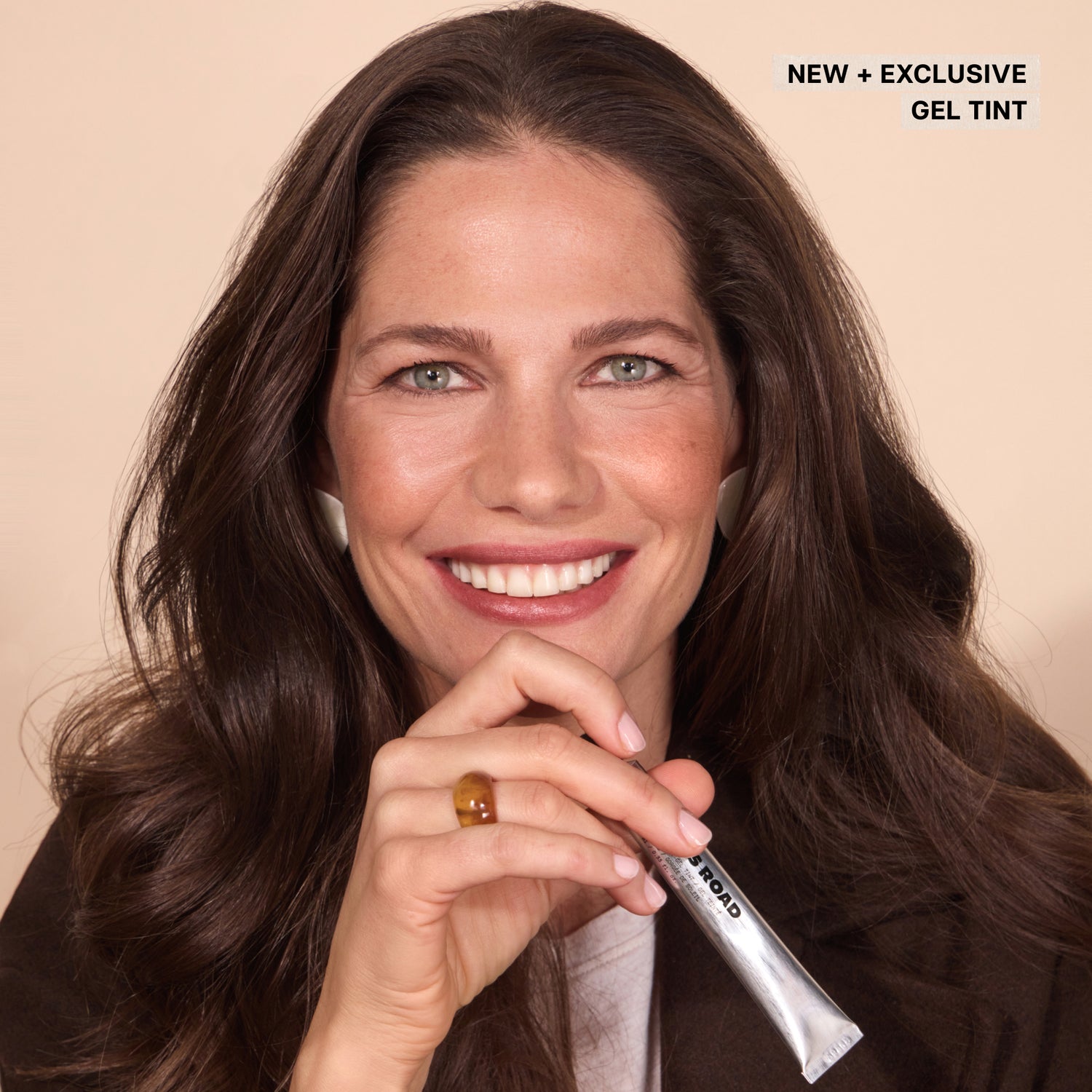 Gel Tint is a liquid face tint that creates natural luminosity. Think of it as sheer color and highlight in one. It’s lightweight, versatile, and infused with nourishing ingredients. To apply, tap a pea-sized amount directly onto cheekbones, nose, forehead, or anywhere you want to create a subtle tint and highlight. Blend in using your fingertips, The Skin Brush, or The Everything Brush. Use after your skincare routine on a bare-skin day, or after applying complexion products in a fuller look.